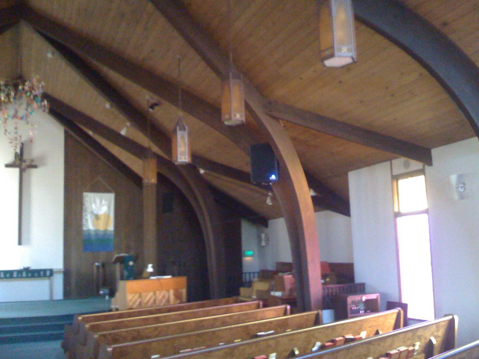 We just finished the install at the United Church in University Place, WA. We changed the location of the speakers along with new ISP Speakers. The front pews really don’t need re-enforcement because they are close enough to hear everything naturally. That allowed us to install 2 overhead choir mics for the choir. The comments from he congregation were “I could hear everything clearly for the first time in years” “I sit in the back and I could hear the choir” (they were not able to mic the choir before because of the old speaker location) The choir is located between the 2 arches on the right side. Between the old speaker location and the new speaker location